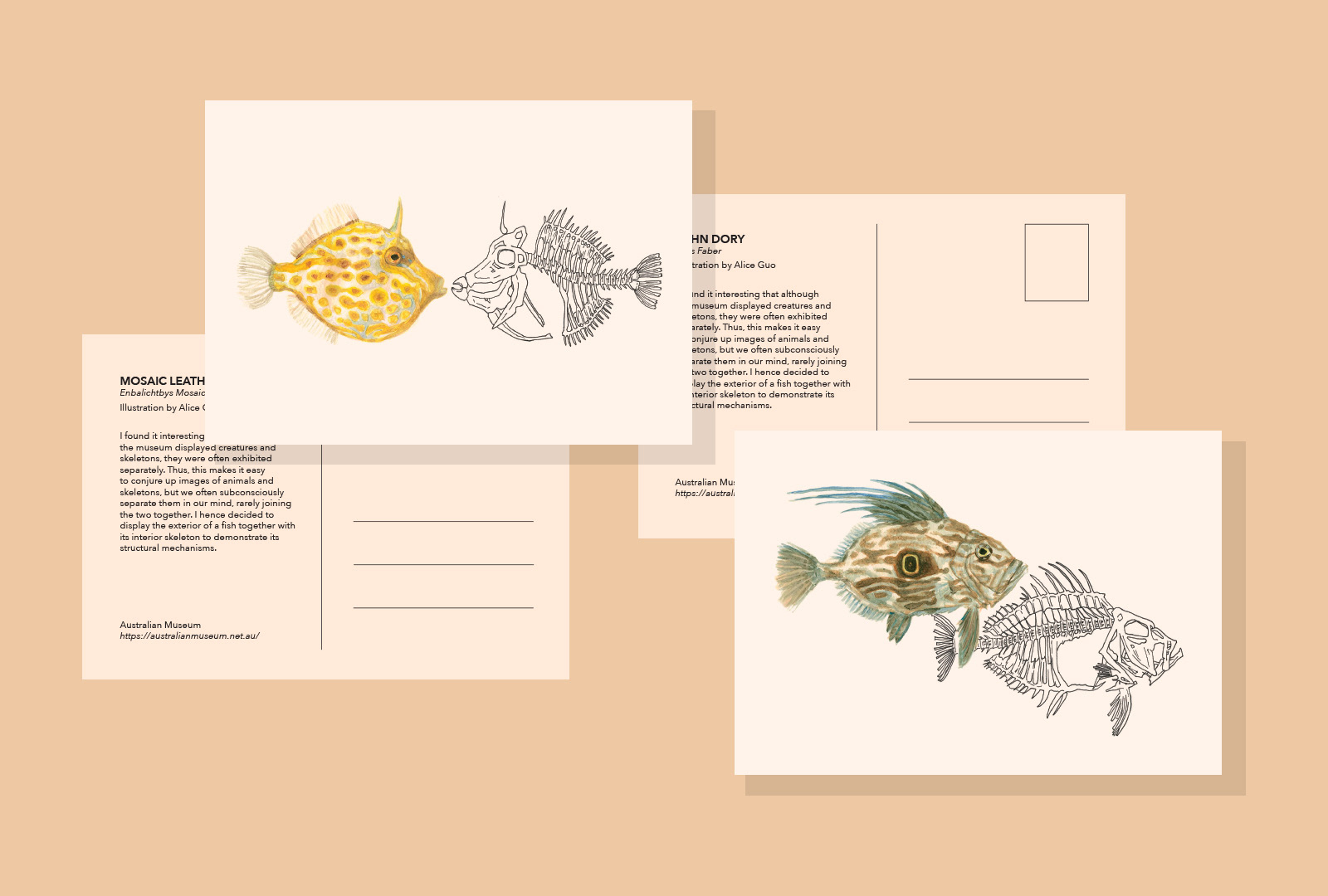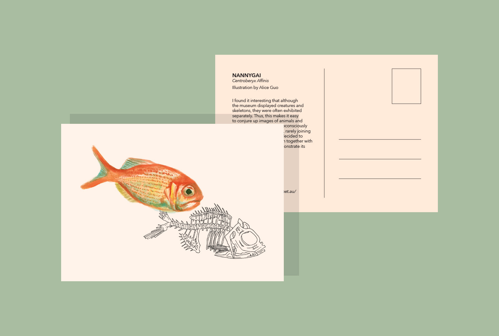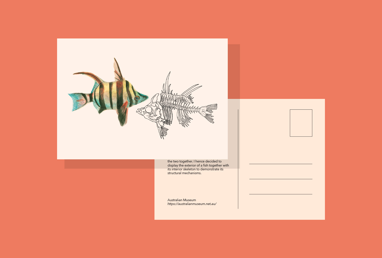 Inspired by my visit to the Australian Museum, I created a series of postcards. I created the illustrations by hand, using watercolour & ink.