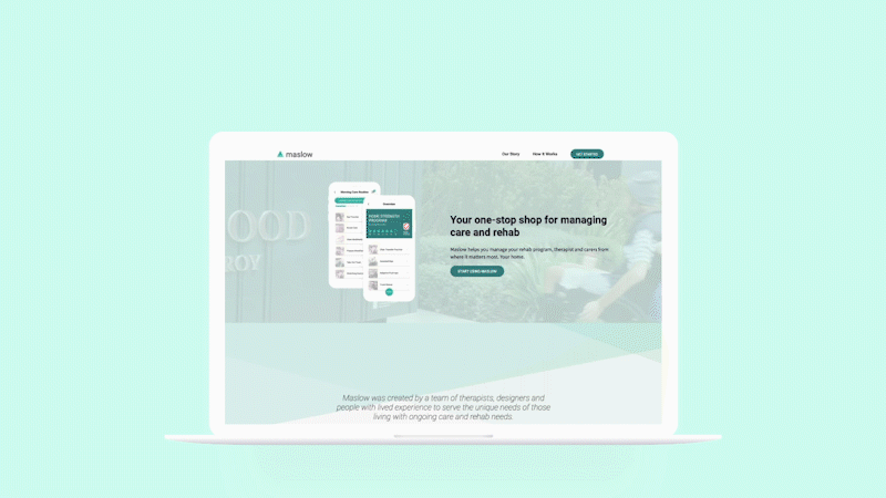 Maslow for People is a tech start-up in the digital health sphere. Maslow is a mobile platform that makes it easy for people with complex care needs to manage their care and rehab at home. As the first Visual Designer, I was responsible for creating and implementing the rebrand & visual identity of Maslow, by collaborating directly with the CEO.