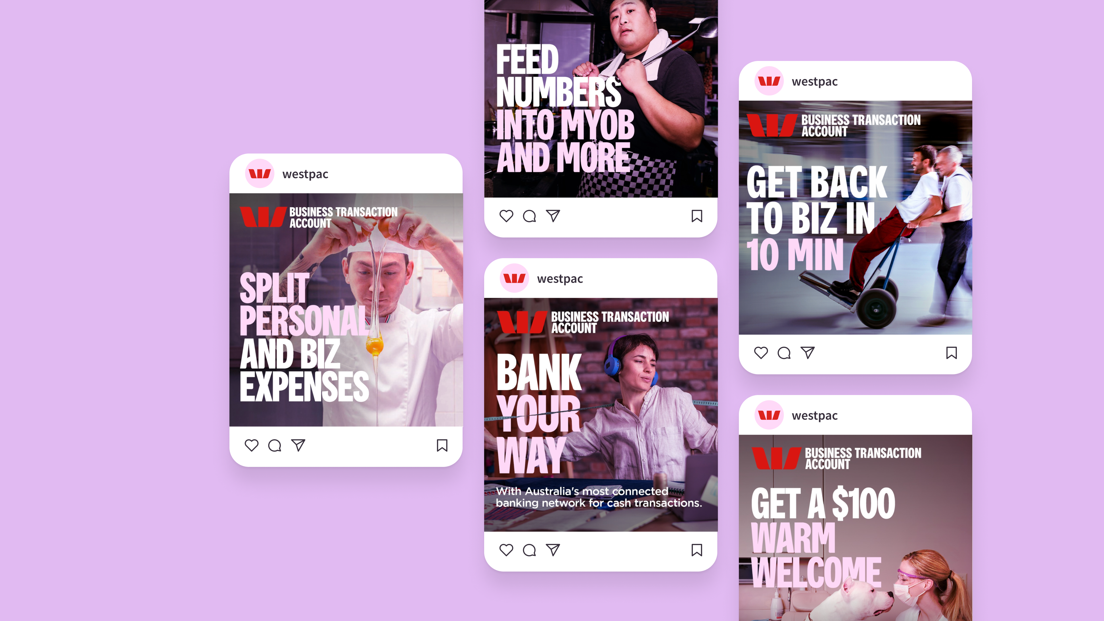 To stand out in a convoluted consumer finance space, Westpac has rebranded to tell unusual stories to disrupt and emotionally engage with the customer. Therefore, to communicate the value of Westpac’s products, features or services, we’ll always use an unexpected but relatable scenario.
